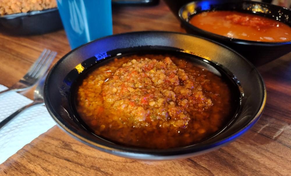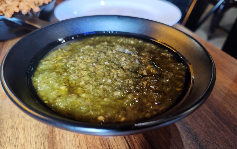 That was until I found out that “Gepuk” and “Ganteng” are in fact Javanese words, at which point I didn’t feel like such a Malay language failure. Ayam Gepuk (ie. smashed chicken) is, as the name suggests, a dish that originated in Java, but it’s become very popular in recent years in Malaysia. It is typically served with a cashew-based sambal, but at Ayam Gepuk Ganteng, it comes with three different types of sambal, each with its own flavour and heat profile.