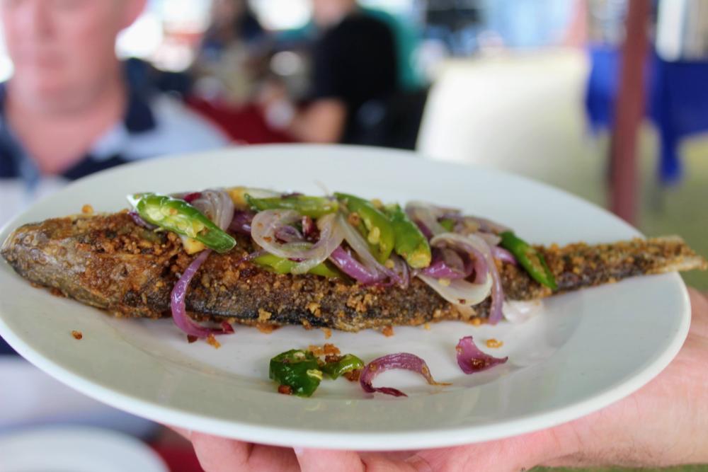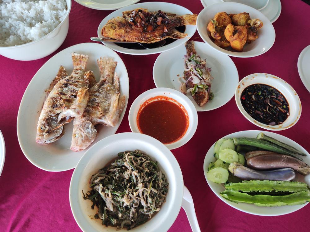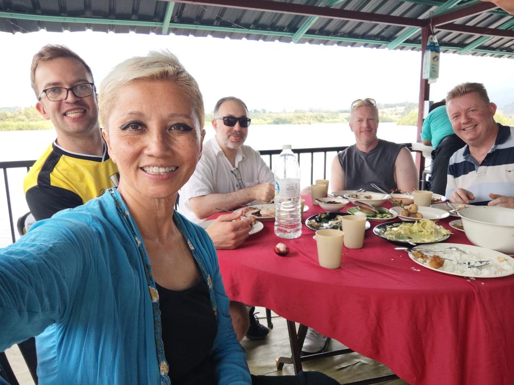 We were picked up in boats and taken to the fish farm in the middle of the lake, with an adjoining floating platform where the food would be served. We were invited to catch the fish for our lunch, after which they were cooked onsite by the restaurant along with other dishes including pekasam (salted fish), and stir-fried local ferns. All the dishes are cooked Malay kampung-style and enjoyed under cover.